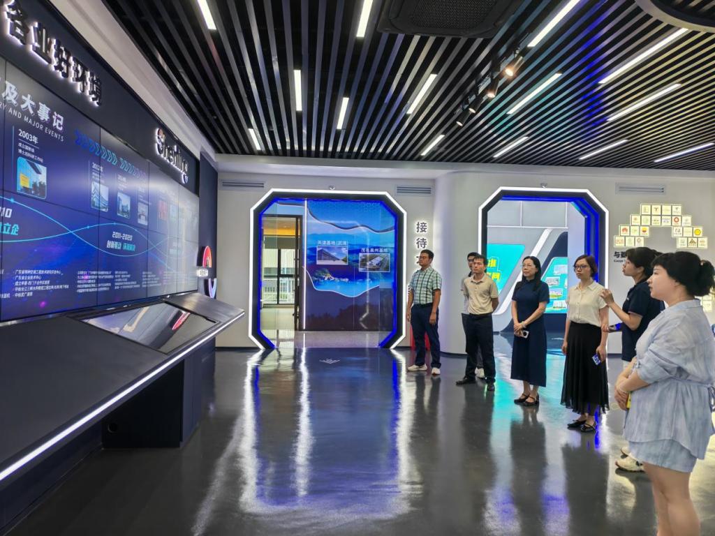 调研期间,张蓝青一行参观了企业综合展厅和员工生活区域。在展厅内,企业负责人详细介绍了申菱环境的发展历程、核心技术及代表工程,包括为核电站、数据中心、石化企业等提供的定制化环境解决方案,生动展示了企业在特种空调领域的创新成果和标杆地位。调研团队还走访了员工生活区域,直观了解企业标准化的公寓设施、舒适整洁的餐饮环境及丰富多彩的文体活动。
