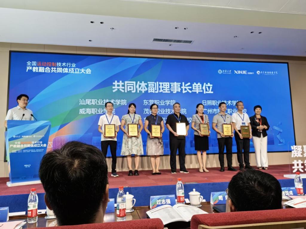 此外,我校受邀加入由无锡信捷电气、江南大学、东莞职业技术学院牵头组建的“全国运动控制技术行业产教融合共同体”,并当选副理事长单位。这标志着学校在深化校企协同、构建“赛教融合”育人体系上迈出关键一步,未来将通过共同体平台共建课程标准、共享实训资源,进一步提升学生技术创新与产业服务能力。