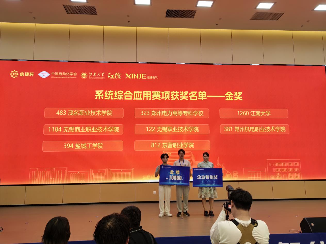 8月12日至13日,第一届“信捷杯”全国大学生智能制造创新大赛总决赛在江南大学霞客湾校区圆满落幕。我校由蔡美丹老师指导、刘鑫与傅少帆等同学组成的“从容应队”凭借卓越表现,在系统综合应用赛项中以总分第一的成绩斩获金奖,并荣获“企业特别奖”,成为该赛项全国8支金奖团队中唯一来自华南赛区的高职院校代表。
