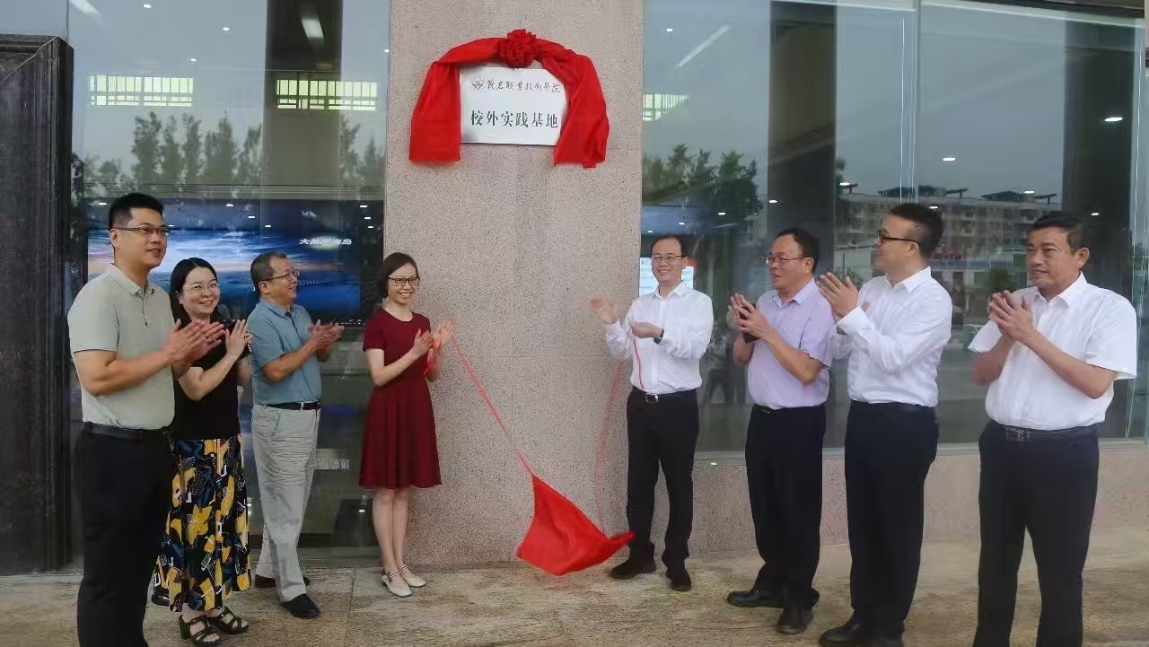 会后,双方共同为“茂名职业技术学院大学生校外实践教学基地”揭牌,红色幕布缓缓落下,标志着双方产学研用正式启航。