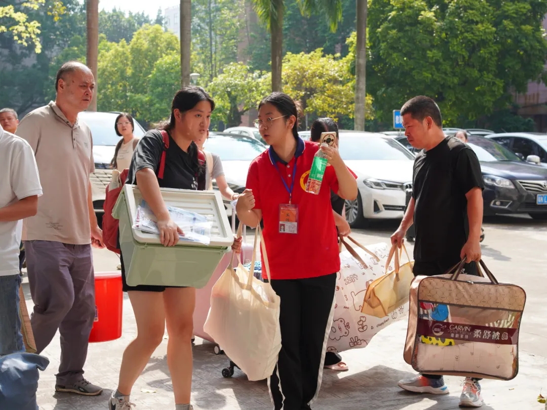 在新生报到的热闹场景中,除了朝气蓬勃的新生与忙碌的志愿者,还有一群特殊的身影——陪伴新生前来的家长。他们拎着沉甸甸的行李,带着满满的牵挂与期待,穿梭在校园的各个角落,用行动为孩子的“大学第一程”保驾护航,留下诸多温情满满的瞬间。他们有的在宿舍仔细打包整理,琐碎细节显爱意;有点拿起手机拍下难忘瞬间,留下入学第一天的纪念;有的迫切地向老师、学长了解更多学校情况,生怕遗漏关键信息。