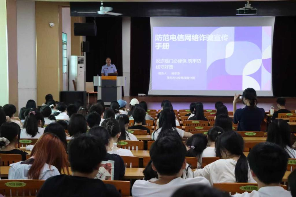9月23日上午,茂名市公安局茂南分局刑事侦查大队新型犯罪侦查中队吴志添中队长在北校区小礼堂为人文与传媒系2025级新生市带来首场专题讲座。他以“筑牢反诈防线,守护平安校园”为题,结合高校常见电诈案例,生动剖析了诈骗手法与话术,深入讲解防范要点与应急处置方式,“守护好自己的‘钱袋子’”。警官结合真实案例,提醒新生们要时刻警惕常见的电信网络诈骗手段。随后茂名市消防救援支队彭海花宣讲员为新生带来了深入浅出、理论与实践相结合的消防安全理论的讲解。