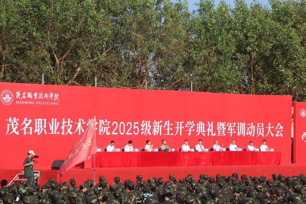 大风起兮云高飞,秋色胜春朝。校园里洋溢着青春的活力与蓬勃的朝气,10月11日上午,我校在南北两校区同时举行2025级新生开学典礼暨军训动员大会。茂南区和电白区人武部领导,学校领导,相关职能部门负责人,各系负责人、教师代表、军训教官以及全体2025级新生共同参加了此次盛会。