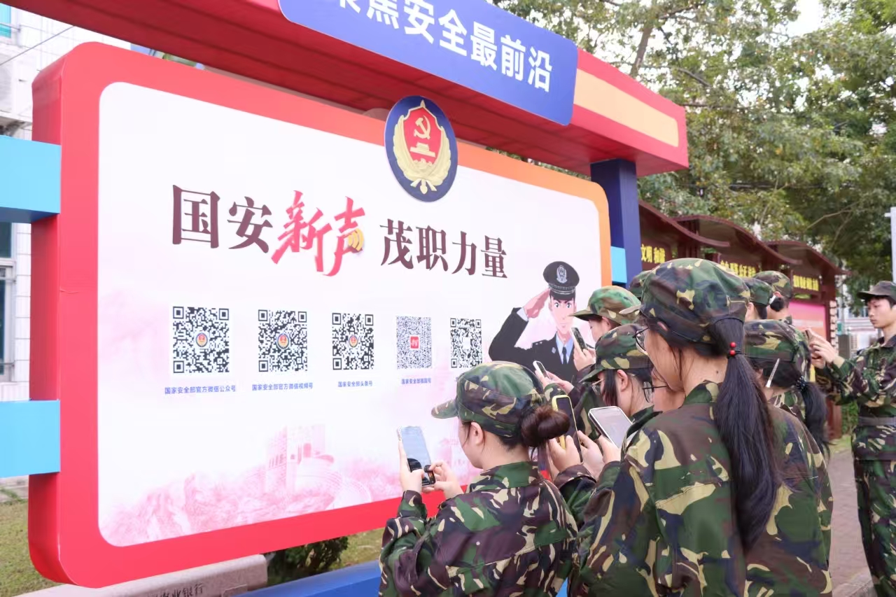 青年学子心向党,知国爱国情更浓。10月13日至31日,我校联合茂名市国安支队开展“国安新声 茂职力量 ”为主题的国家安全宣传教育活动。本次活动通过在校园布展、发放宣传单张、开展系列宣传主题活动等形式,以宣介总体国家安全观、宣传国家安全法律法规、普及国家安全知识为主要内容,营造“国家安全 人人有责”浓厚氛围,引导青年学生自觉成为国家安全的坚定维护者和积极宣传者。