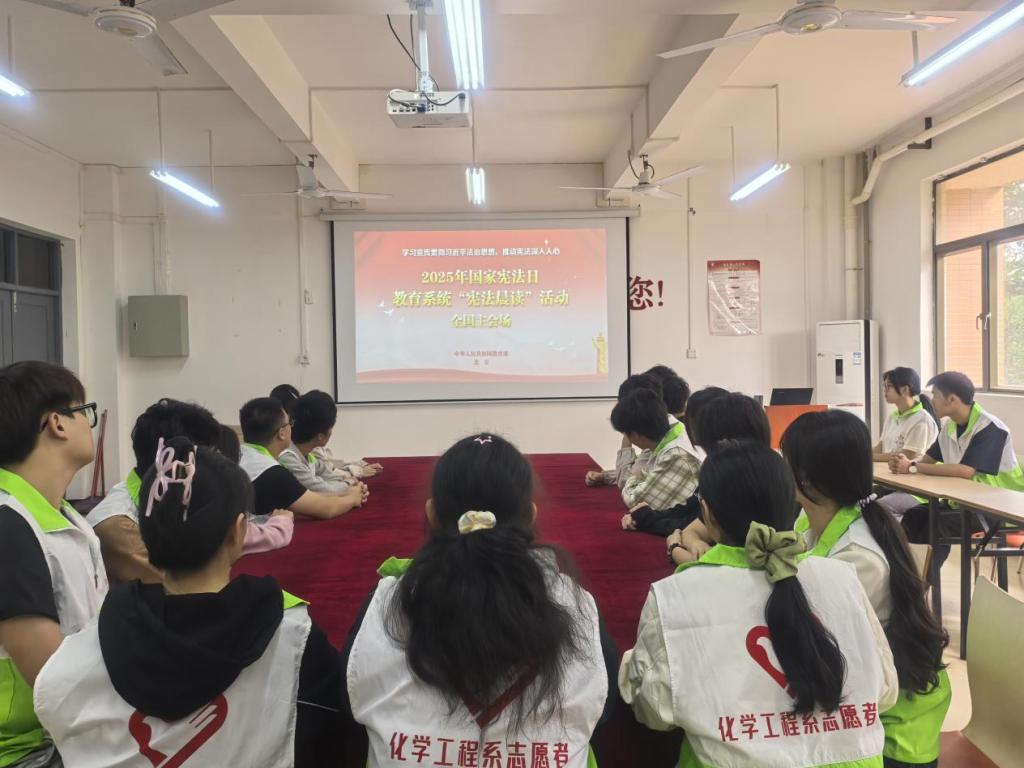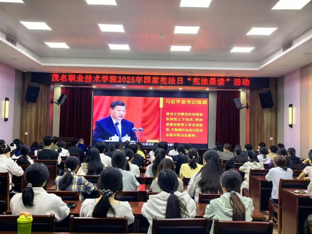 12月4日,在第12个国家宪法日到来之际,我校组织南北校区师生代表,同步收看了教育部2025年国家宪法日“宪法晨读”活动网络直播。上午10时,活动在庄严的升旗仪式中开始。在北校区主会场和南校区分会场,师生们同步跟读宪法条款,齐唱《宪法伴我们成长》歌曲,并认真观看了全国学生“学宪法 讲宪法”活动优秀作品展演。
