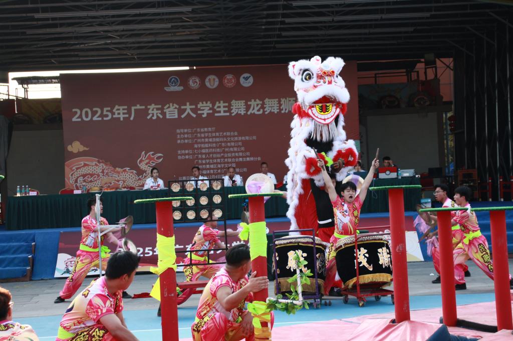 12月7日,2025年广东省大学生舞龙舞狮锦标赛在广州海宇龙狮龙舟文化园圆满闭幕。我校龙狮队奋勇拼搏,再创历史佳绩,男子高桩南狮荣获丙组第一名(卫冕冠军),女子传统南狮荣获丙组第二名(蝉联亚军),女子群狮荣获丙组第三名,男子群狮荣获丙组第四名,女子集体鼓乐荣获丙组第六名,男子传统南狮荣获丙组第七名,男子集体鼓乐荣获丙组第七名。凭借上述优异成绩,我校最终荣获本次大赛丙组团体总分第二名,创下参赛七年来的历史最佳排名。梁标老师荣获“优秀教练员”称号。