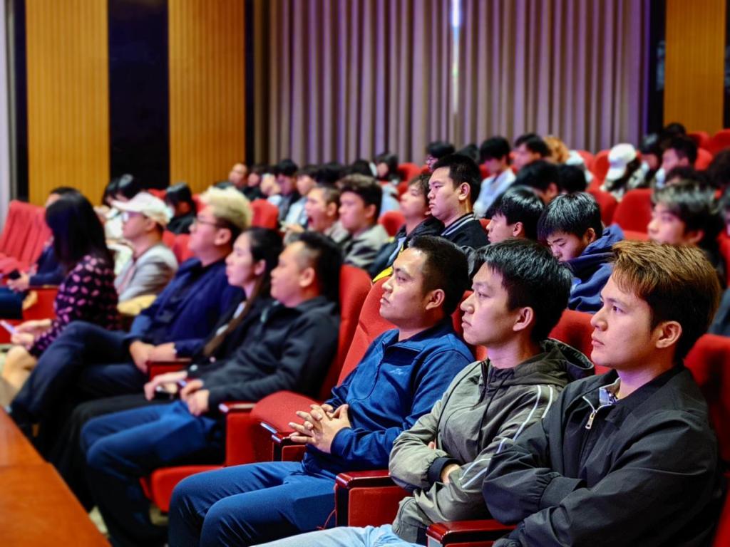 为助力复学退伍军人同学更好融入校园学习生活,实现军旅生涯与学业发展的无缝衔接,引导24级、25级学子合理规划学业,帮助2026届毕业生迈向成功就业之路,12月25日下午,学生工作部、保卫部、土木工程系及学校“一站式”学生社区、思想政治辅导员工作室联合在南校区学术报告厅举办了“复学退伍军人暨我的星艺艺术人生(第二期)”讲座。邀请广东星艺装饰集团茂名区域总经理陈守洪带领茂名星艺众多资深设计师出席讲座。土木工程系党总支副书记李振潭、南校区各系辅导员、复学退伍军人学生、土木工程系部分学生近500人聆听了讲座。讲座现场座无虚席,大家的热情参与,为讲座注入了满满的期待与活力。