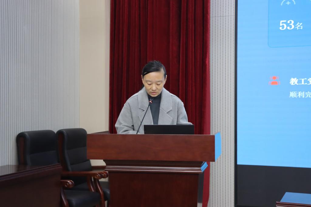 会上,11个二级单位(部门)党组织书记依次上台进行了抓党建工作现场述职,还有11个党组织书面述职。从履行党建工作“第一责任人”责任,聚焦贯彻落实党的二十届四中全会精神,深入贯彻中央八项规定精神学习教育、增强基层党组织政治功能和组织功能、团结凝聚广大师生大抓发展举措和成效,推动基层党组织和广大党员坚定拥护“两个确立”、坚决做到“两个维护”,落实学校2025年工作计划情况等方面亮成绩、点问题、析原因、理思路。参会人员对现场述职和书面述职的党组织进行了评议打分。