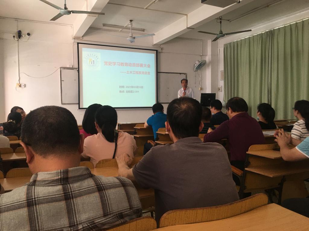 按学院党委的统一部署,3月18日下午,土木工程系党总支在北校区2-301室召开了党史学习教育动员部署大会,深入学习贯彻落实习近平总书记在党史学习教育动员大会上的重要讲话精神和党中央《关于在全党开展党史学习教育的通知》精神。土木工程系全体党员参加了会议。