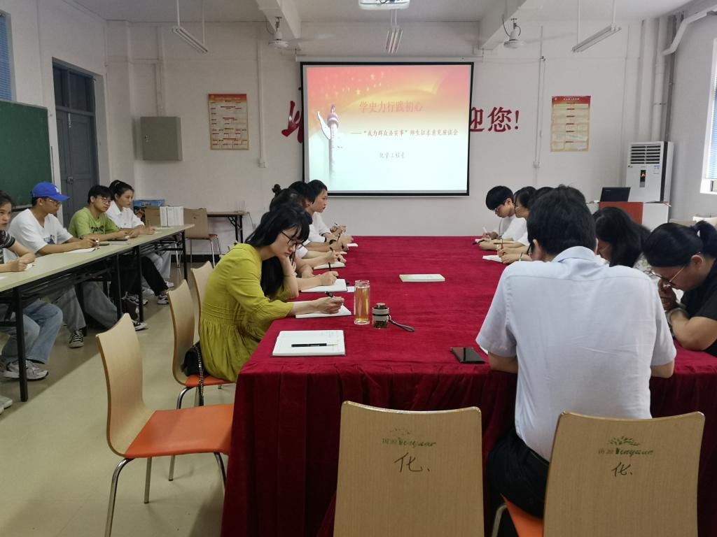 “欲知大道,必先为史”。化学工程系党总支高度重视,精心组织,开展党史学习教育系列活动,从党的历史中汲取精神力量。学党史重在力行,将党史学习教育同解决师生急难盼问题结合起来,扎实开展“我为群众办实事”实践活动,5月13日下午,化学工程系党总支在9-205召开“我为群众办实事”师生征求意见座谈会,化学工程系党总支副书记黄小翰、教工支部书记张燕、学生支部书记王丹菊、辅导员、教师代表和学生代表参加座谈会。会议由黄小翰主持。