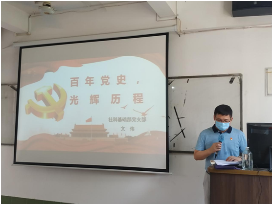 为庆祝中国共产党建党100周年,重温党的光辉历史,进一步提高党员的荣誉感、责任感,切实发挥党员的先锋模范带头作用,6月29日下午,社科基础部党支部在北校区2号教学楼202教室组织开展了“讲党课、学党史、重温入党誓词”主题党日活动。