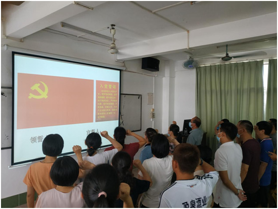 活动最后,在副书记黄丽的带领下,全体党员面对鲜红的党旗,庄严地举起右手,重温入党誓词,一同回顾铮铮誓言,坚定理想信念,牢记党的宗旨,永葆共产党人先进本色。