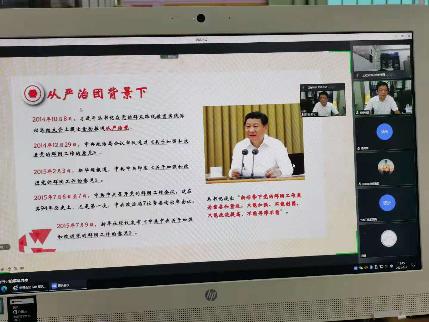 为了让新发展团员了解到如何才能作为一名合格的共青团员,提高团员的个人修养与内涵,学校团委于7月1日下午开展线上线下茂名职业技术学院“新时代的共青团”新发展团员团课主题培训活动。此次培训由团委书记李锋成、副书记梁凤燕主讲,周昇媚老师主持。全体2021年新发展团员参加了此次团课。