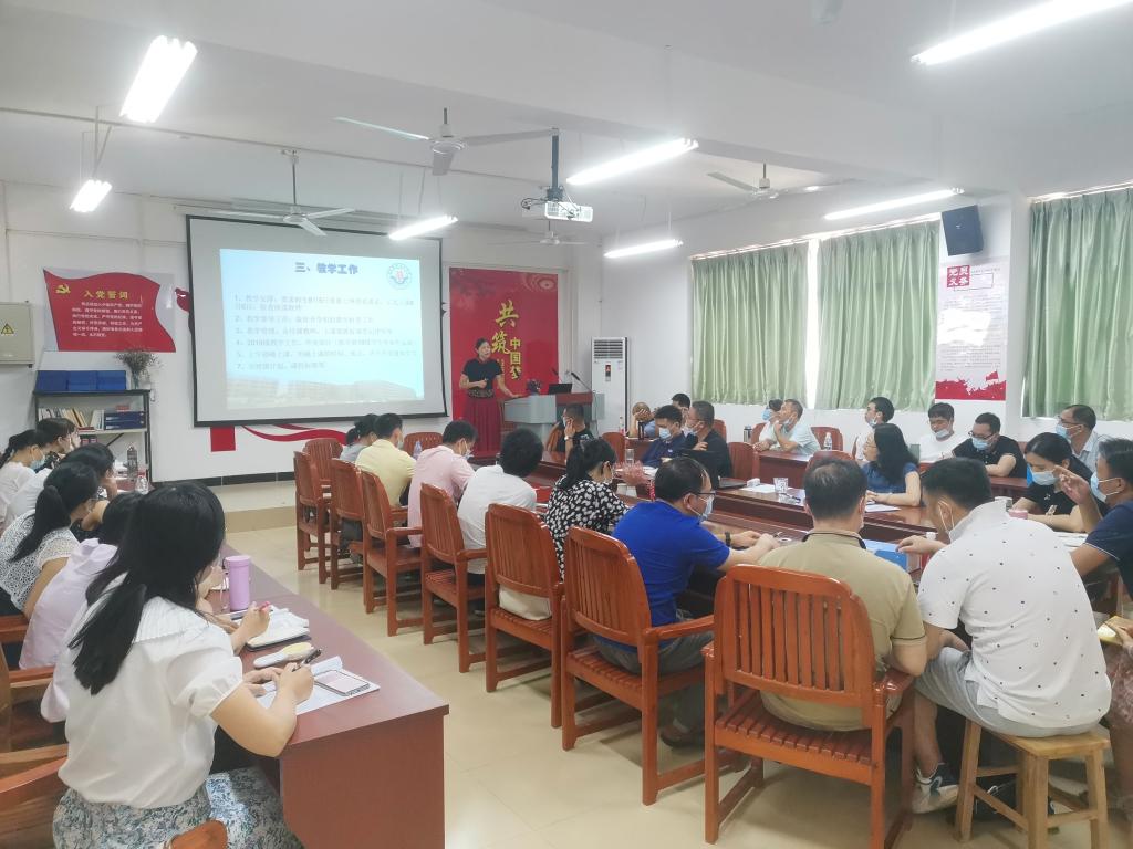 周洁文通报了招生和就业、教师企业锻炼、学生暑期“三下乡”社会实践等假期工作情况。随后传达了广东省2021秋季开学工作等会议精神,对新学期工作进行总体部署,特别强调要坚持立德树人根本任务,在疫情防控常态化下,要夯实综治维稳,安全常抓不懈。