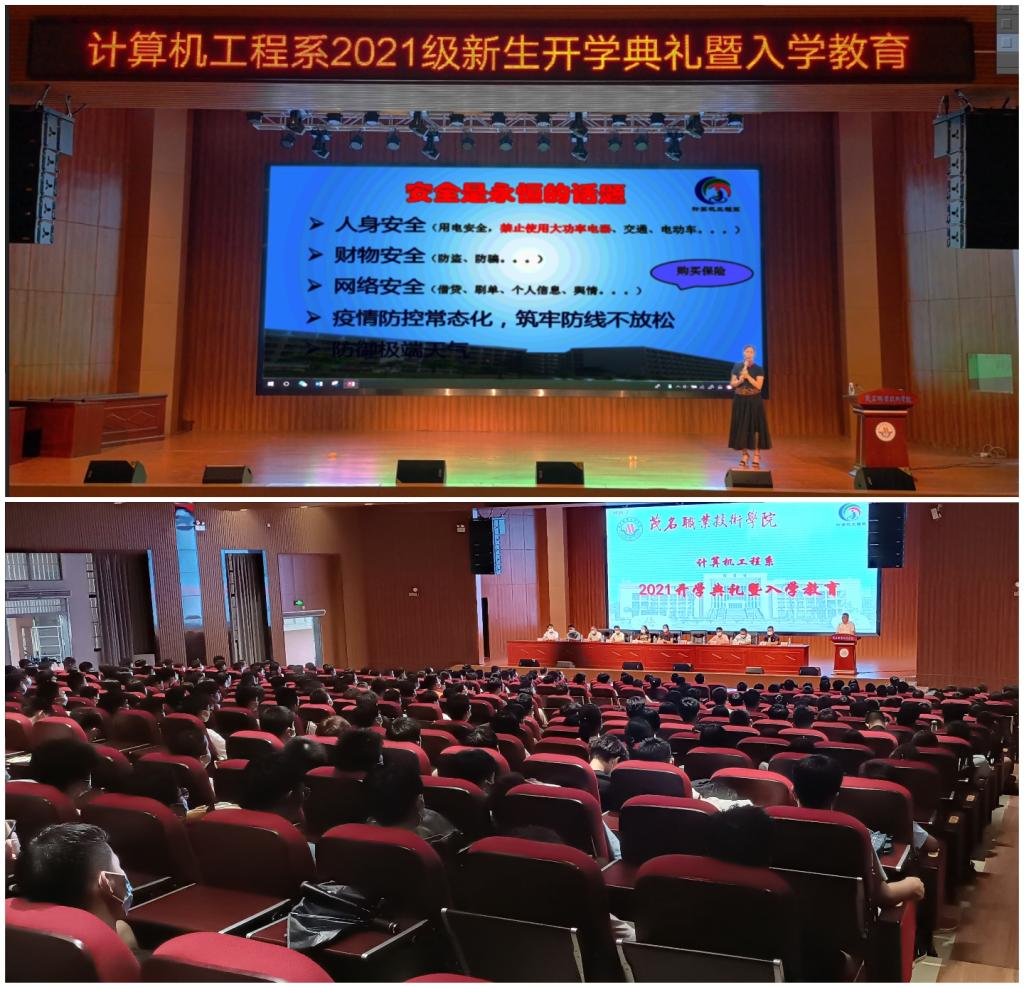 9月14日上午,计算机工程系在南校区学术报告厅举行2021级新生开学典礼暨入学教育。系主任周洁文、系党总支副书记蒋南牧、系副主任周春出席开学典礼,各专业教研室主任、全体辅导员及2021级班主任参加,开学典礼由副主任周春主持。
