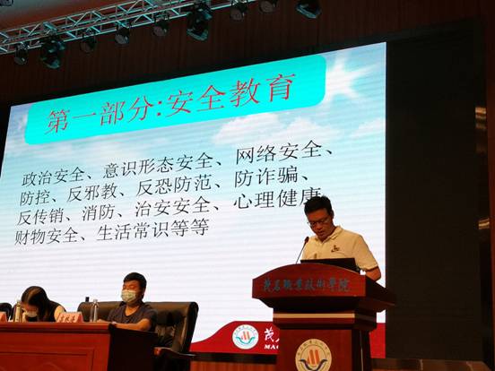 李振潭给2021级新生上“开学第一课”及安全教育。李振潭就政治安全、意识形态安全、网络安全、反邪教、防诈骗、反传销、疫情联防联控、消防安全、治安安全、心理健康、财物安全、食品安全、生活常识等进行了详细讲解。他在讲话中引导学生要深刻认识中国抗疫彰显的中国共产党领导和中国特色社会主义制度的显著优势。他对学生提了三项要求,一是形成规律性生活,二是树立正确的世界观、人生观、价值观,三是尽早确立目标并为之奋斗。他希望学生努力践行社会主义核心价值观与“感恩、友善、法治、身体、能力、信用”,早日成长为社会有用之才。