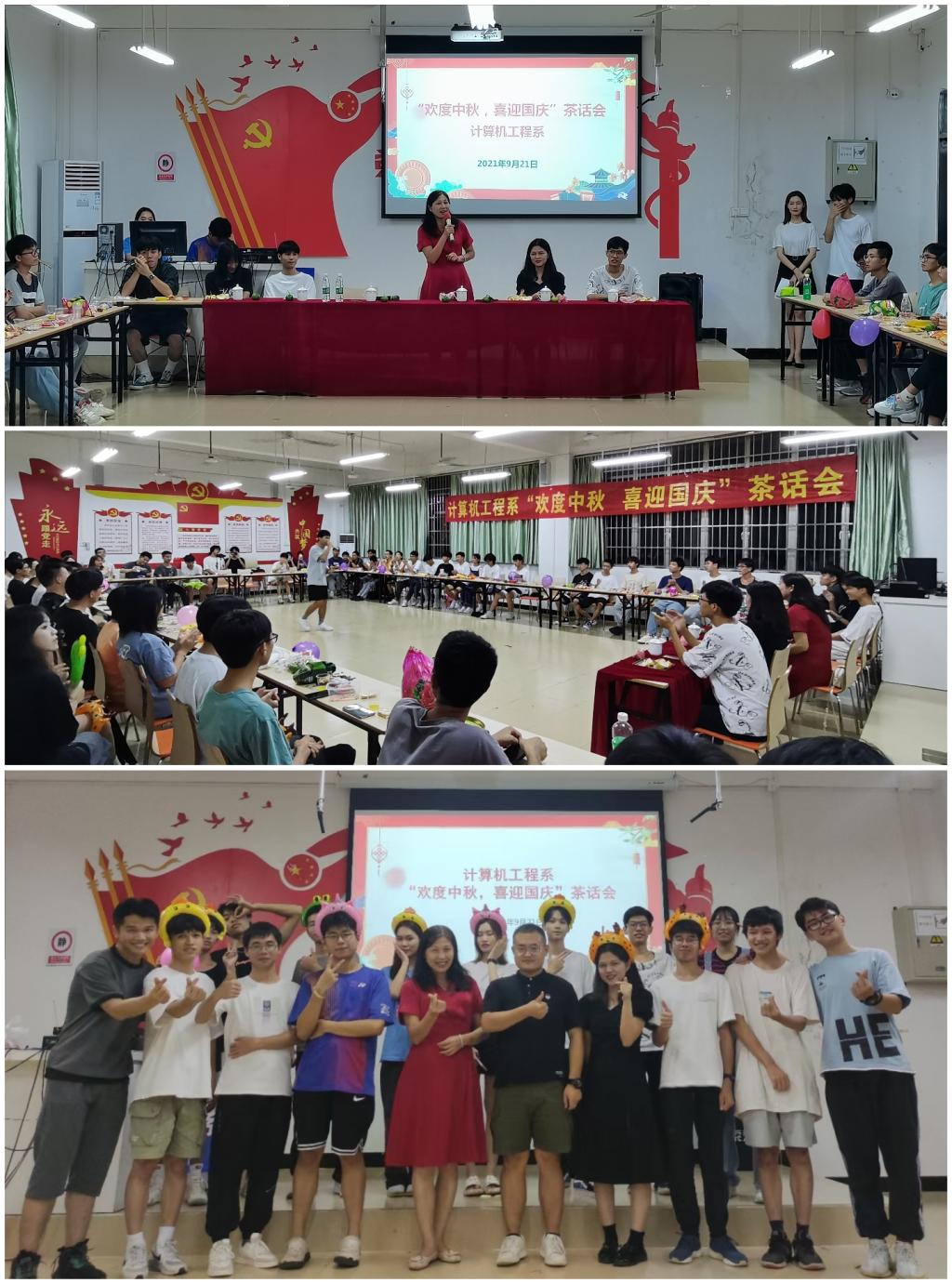 佳节牵情思,计机暖人心。9月21日晚,计算机工程系在南校区6栋104教室举办了“欢度中秋,喜迎国庆”茶话会。我系21级新生代表、班助等58名同学参加茶话会,系主任周洁文、辅导员和班主任到场和大家欢聚一堂,共度佳节。