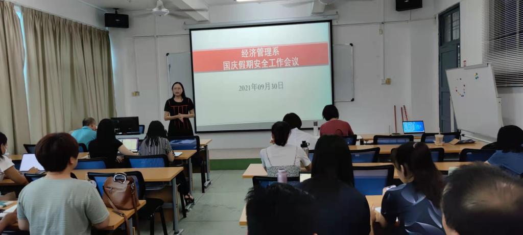 为进一步落实学校关于稳定安全工作的文件精神,做好疫情常态化防控期间国庆假期安全稳定工作,9月30日下午,经济管理系在北校区1栋307召开国庆假期安全工作布置会,会议由经济管理系主任崔萍主持,经管系全体教师参会。