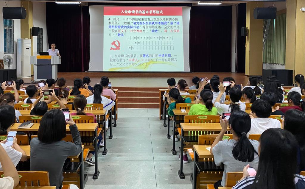 潘坤才向2021级新生重点讲解了中国共产党的光辉历史、性质和宗旨、入党的条件和程序、党员的权利和义务等重要内容,极大提高了2021级新生对党的了解和认识。