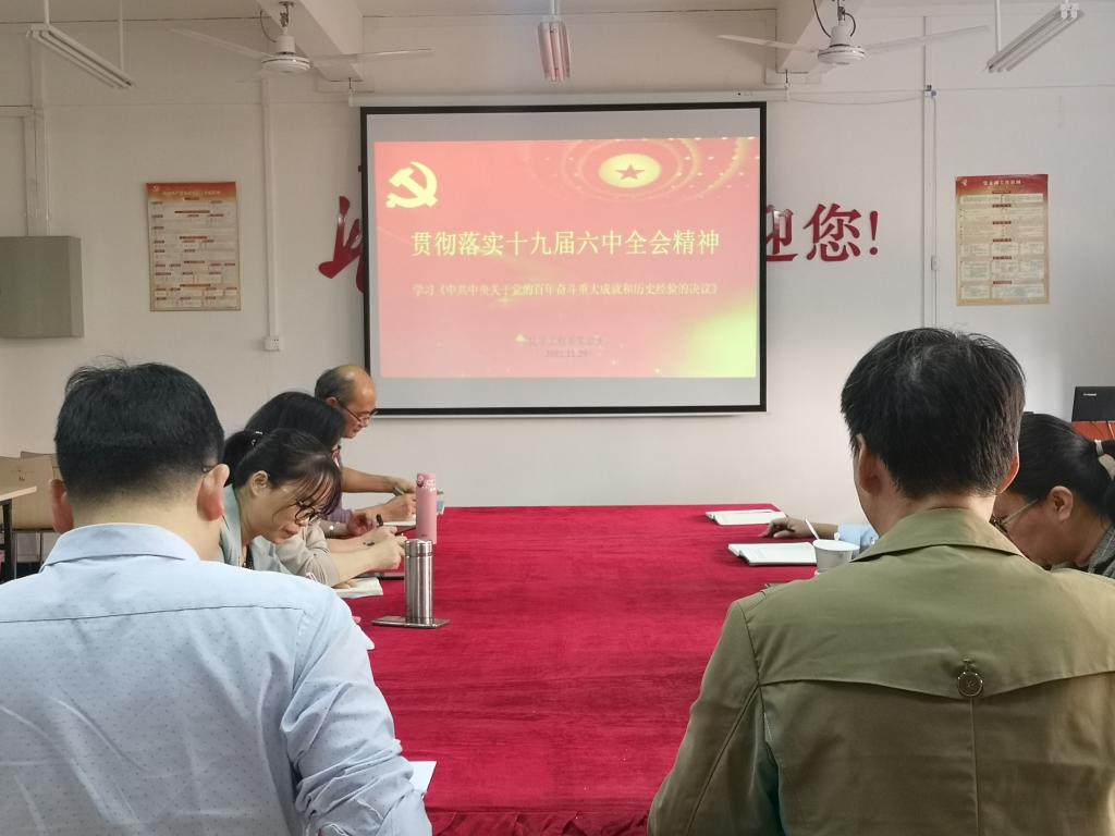 11月29日下午,化学工程系党总支在党员活动室9-205召开了党的十九届六中全会精神专题学习会议。会议由化学工程系主任董利主持,全体党员教师以及教师代表参加了会议。