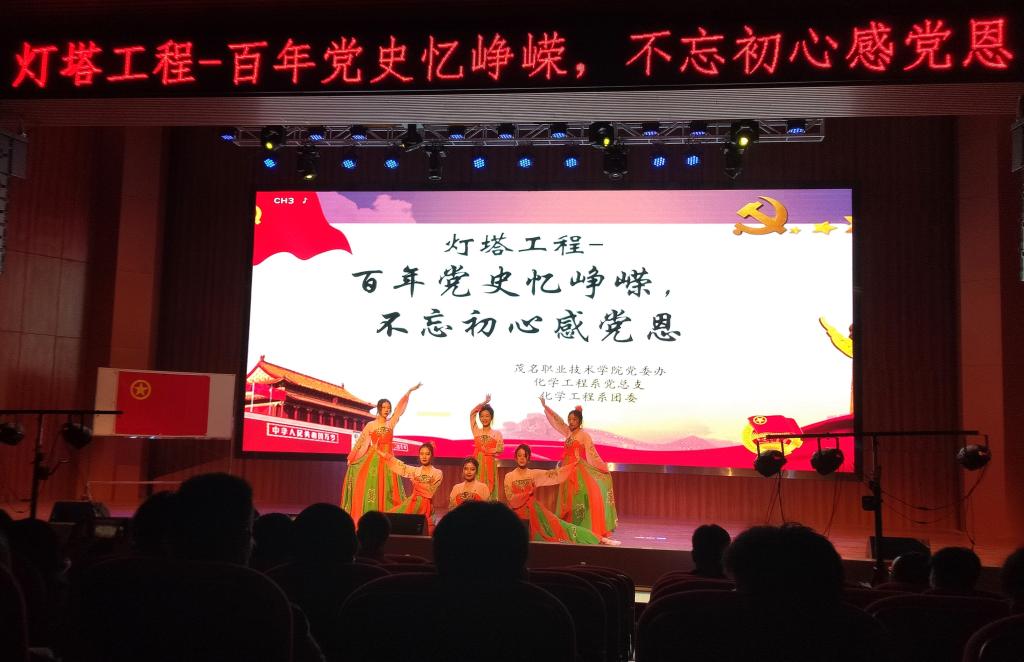 晚会中,激情膨拜的朗诵《百年答卷》昭示了中国共产党百年征程,信仰弥坚的志向。虎虎生威的军体操则昭展了莘莘学子健体强军的决心。姿势柔美的舞蹈《繁花》彰显了青年学子对中国传统文化的自信。感人肺腑的朗诵情景剧《跨越百年的对话》展现了中国共产党百年征程,初心不改的坚守。婉转悠扬的歌曲《最初的梦想》则表达新时代大学生“请党放心,强国有我”的铮铮誓言。这些节目都表达了化工学子听党话、感党恩、跟党走,弘扬伟大的建党精神,以史为鉴,开创未来的时代风貌。