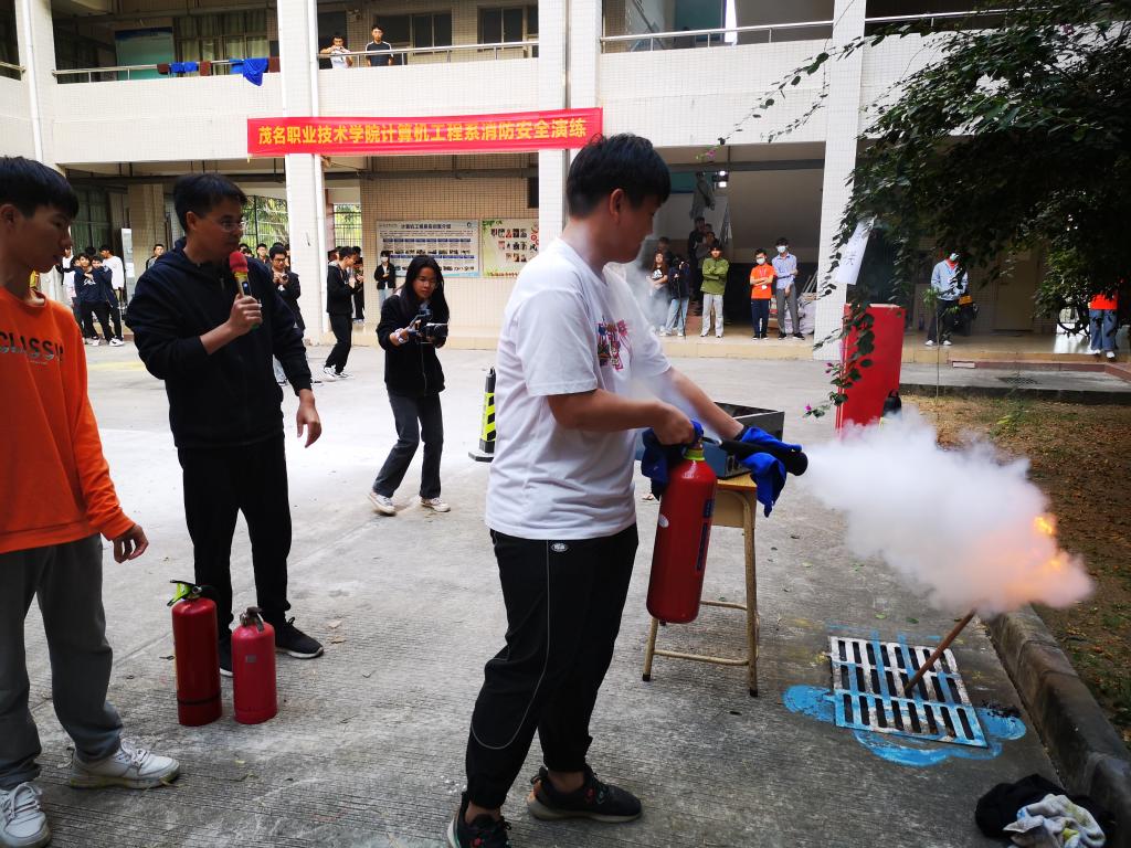 本次安全演练采取“消防安全知识教育+现场模拟逃生灭火演练”模式。实训室主任张劲勇通过播放警示教育视频,以真实案例为引导,对火灾现场的应急处置预案、基本逃生技能、灭火器使用方法以及相关注意事项等方面作了详细讲解。随后,消防警报声拉响,任课老师组织学生紧急疏散,接着进行手提式干粉灭火器、二氧化碳灭火器、消防水枪的使用实操演练。为进一步预防火灾和减少火灾危害,提高应急处置能力打下坚实基础。