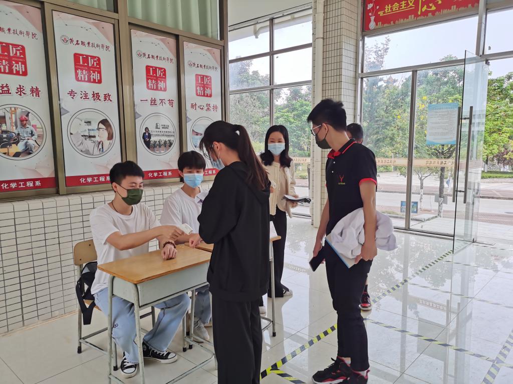充分发挥学生党员、入党积极分子、学生干部、退伍士兵学生在安全隐患和疫情防控的先锋模范作用,组建“疫情防控突击小分队”,用“心”筑牢疫情防控的堡垒。负责每天早晨在实训楼门口轮值,配备红外体温检测仪,认真做好体温检测工作,检查佩戴口罩情况以及查看粤康码,把好实训楼入门关;划分宿舍责任区,定期进行内务卫生、违规电器、防疫措施巡查,及时发现并上报宿舍安全隐患,同时引导同学面对疫情理性表达,不信谣、不传谣、不造谣。