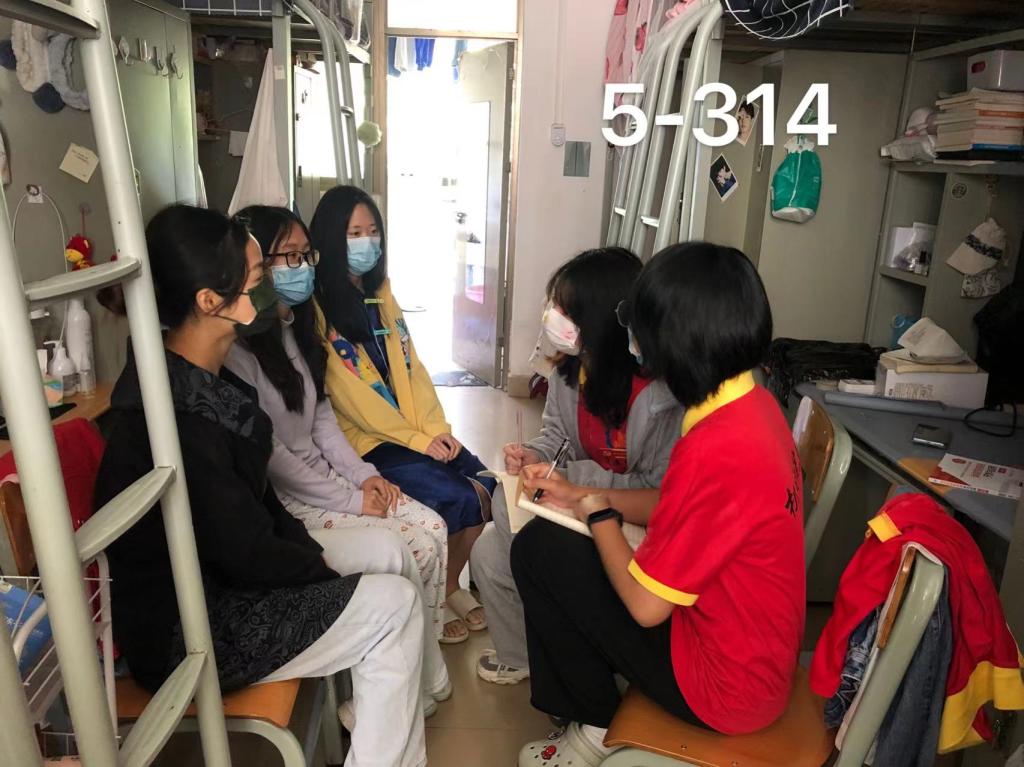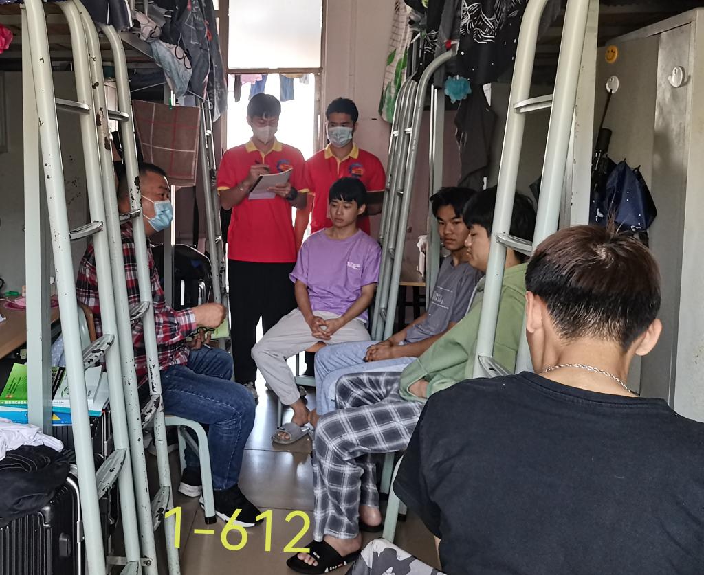 在走“家”串“户”中,张汉军和入党积极分子们详细了解同学们对当下校园疫情防控的适应情况和学习、生活、安全及思想状况,耐心解答同学们提出的防控政策、外出申请、就业创业、交友提示等各种各样的问题,不时赢得同学们自发的掌声和笑声。每到一处,张汉军都会重点强调防诈骗、防校园贷、防网上赌博及构建和美小家、开展健康生活等问题,殷殷嘱咐同学们增强防范意识,保持乐观心态,争做有思想、有情怀、有活力的时代新人。同学们纷纷表示,十分理解和支持配合当下校园疫情防控的措施,要积极营造和谐有序、整洁良好的寝室环境和互助理解、共同成长的新型舍友关系,不负学校和老师的期望,不负青春好时光。