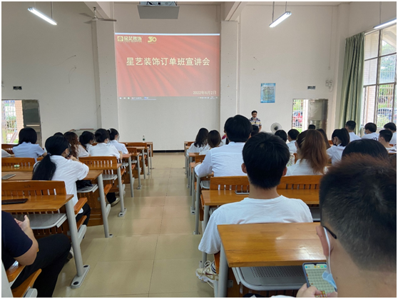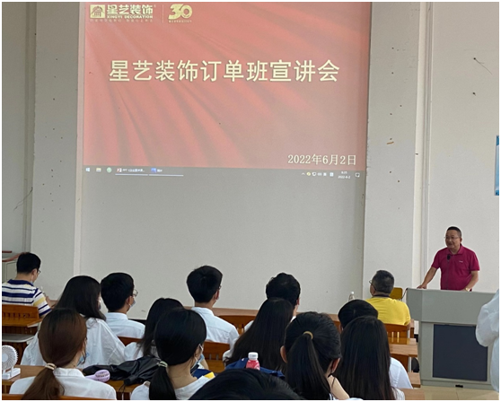 6月2日上午,广东星艺装饰集团校企合作宣讲会在茂名职业技术学院1号教学楼101教室顺利召开。广东星艺装饰集团常务副总裁孙师恒与广东星艺装饰装饰公司茂名区域总经理陈守洪一行4名企业代表,土木工程系党总支副书记李振潭、2020级辅导员以及土木工程系2020级室内设计专业全体学生参加了宣讲会。