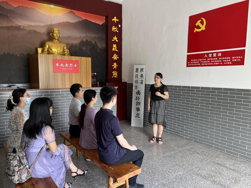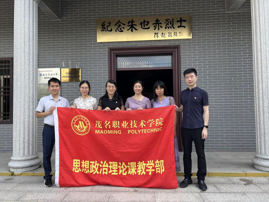 缅怀先烈,厚植爱国情怀, 在中国共产党成立101周年之际,思政部教工党支部、人文系学生党支部到茂南区金塘镇白土村朱也赤烈士纪念馆联合开展党日活动,并举行思想政治教育实践基地挂牌仪式。