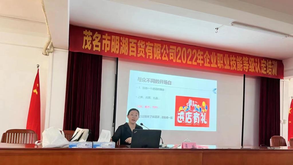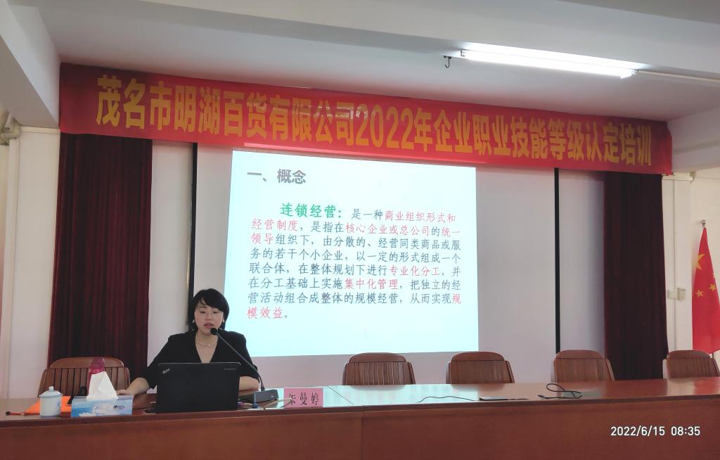 近日,应茂名市明湖百货有限公司(简称明湖百货)邀请,经济管理系教师朱曼婷、黄丽到该公司总部为企业开展职业技能等级培训,来自明湖百货本部、直营连锁店在内的300名员工参加了培训。