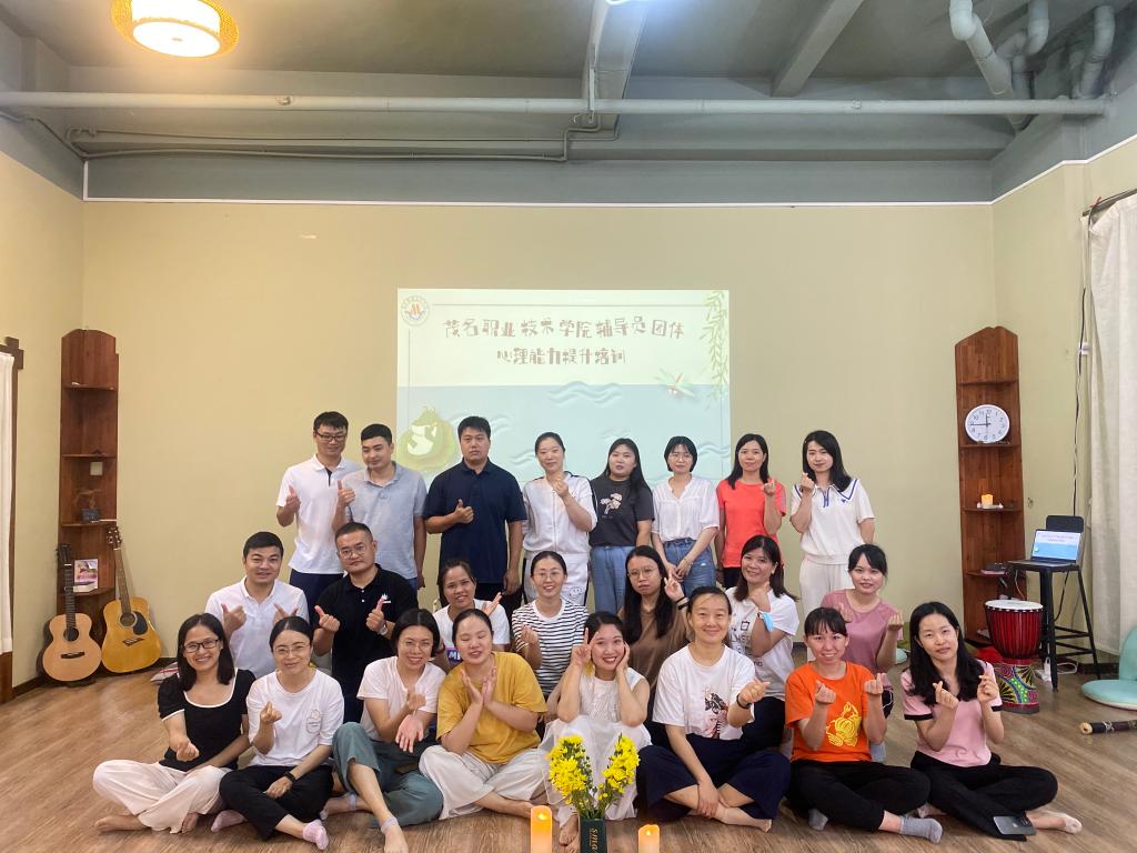 为深入贯彻落实党的十九大报告关于“加强社会心理服务体系建设,培育自尊自信、理性平和、积极向上的社会心态”以及国家“十四五”规划关于完善心理健康服务体系的要求,进一步推进团体心理辅导技术在辅导员队伍中的实践与应用,提高辅导员们对自我身心状态的觉察与调节能力,7月8日上午,茂名职业技术学院学生处心理健康教育与咨询中心组织全体辅导员参加由茂名市心理学会主办的《辅导员团体心理能力提升培训班》,共有32人参加,由茂名市心理学会咨询师、国家音乐治疗师张静老师主讲。