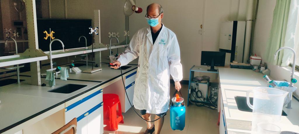 为保障新学期教育教学工作顺利展开,根据校园疫情防控的要求,化工系在8月28日对化工实训楼进行全面清洁与消杀工作。
