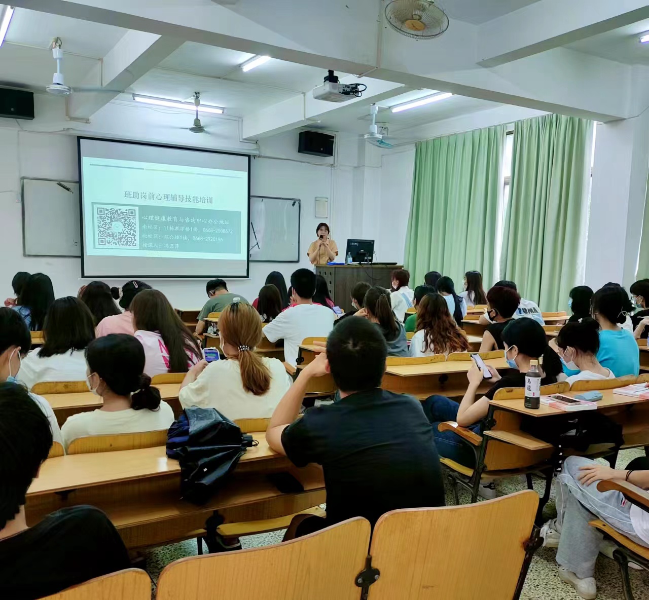 为顺利做好茂名职业技术学院 2022 级新生入学报到工作,做好关爱新生心理健康,提高班级助理及时识别与干预学生心理危机的能力和水平,茂名职业技术学院学生处心理健康教育与咨询中心特面向 2022 级新生班助举办《班助岗前心理辅导技能培训》,心理健康教育与咨询中心的冯君萍老师分别于9月6日晚上19:00-21:00在南校区1-201、9月8日下午16:15-18:15在北校区2-202开展培训工作。南北校区共199名班助参加本次培训。