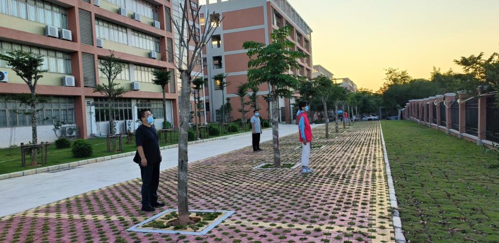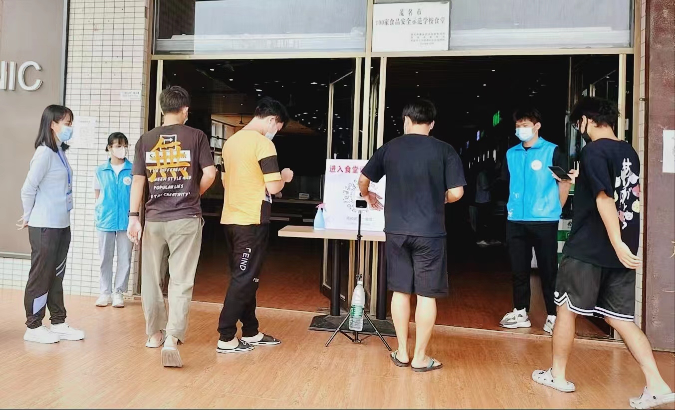 师生志愿者参与食堂值守、巡逻校围墙周边等志愿服务