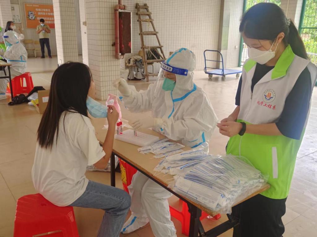 根据学校安排,化学工程系负责学生宿舍15栋、16栋和17栋共四个系的1800余学生的核酸检测组织工作,并成立由团学干部、各楼层长、退伍士兵学生、学生志愿者组成的工作专班,有序组织学生分时段、分楼栋、分楼层、分批次进行错峰检测,最大限度减少等待的时间。为做好责任宿舍区全员核酸检测应检尽检、不漏一舍、不少一人,楼层长还带领志愿者采取“扫楼”的方式,入户走访的方式逐一排查未做核酸采样的学生,通知其前往核酸采样点。参加此次志愿服务活动的退伍士兵学生代表严镇鹏表示,党有召唤,我必有应。保家卫国,义不容辞。