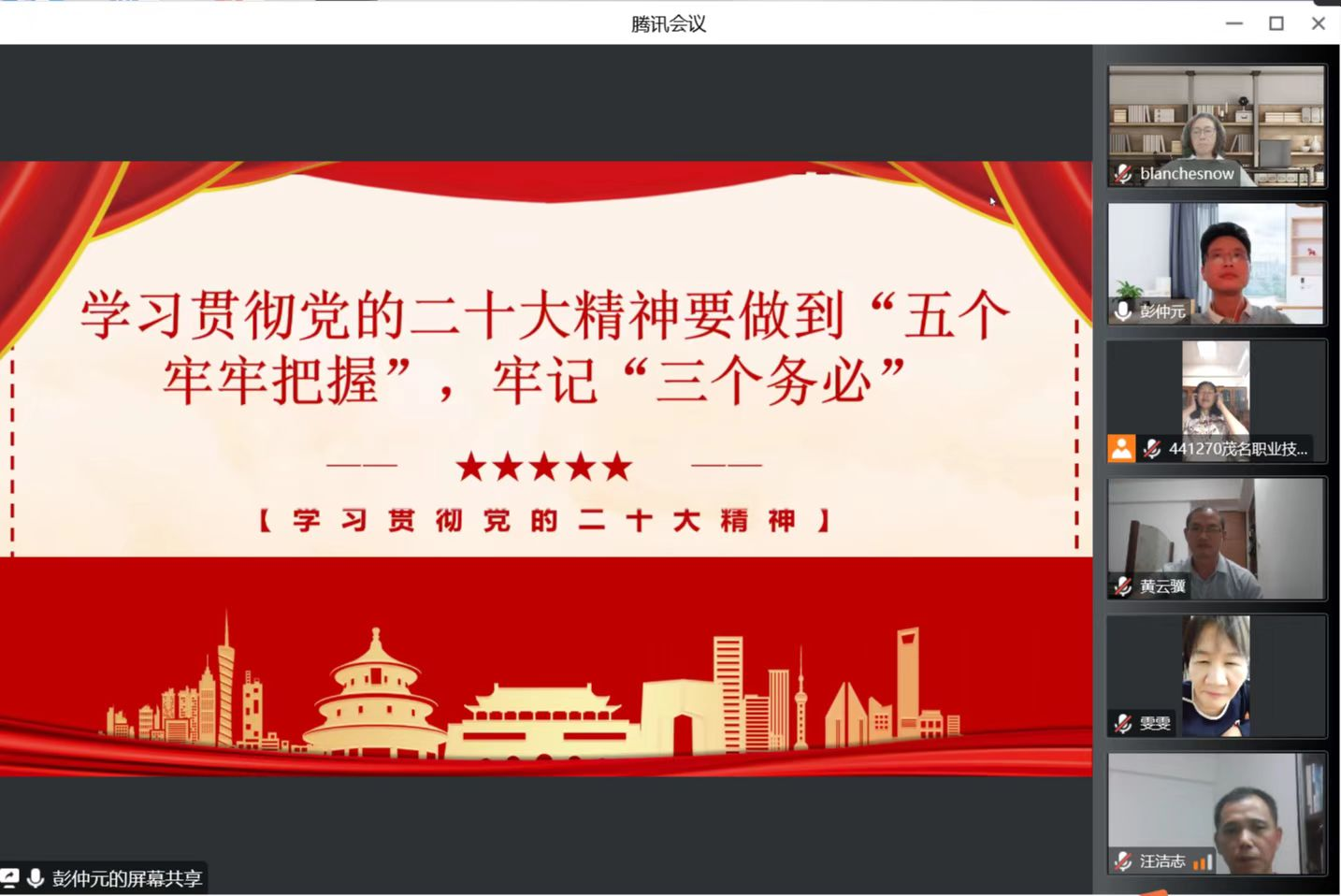 党员们听完党课之后,结合党课的主题内容展开讨论,并各自谈了自己的学习心得。黄丽作了总结发言,她强调:党员一定要深入学习贯彻党的二十大精神,深入学习领会习近平总书记重要讲话精神,高站位、高标准、高质量服务于教学,尤其在当前疫情严峻的情况下,把党的二十大精神融入教学当中,认真完成线上教学任务,关注学生心态与动态,配合学院做好疫情期间的各项工作,同时要求党员主动下沉社区,参与社区内的疫情防控工作。
