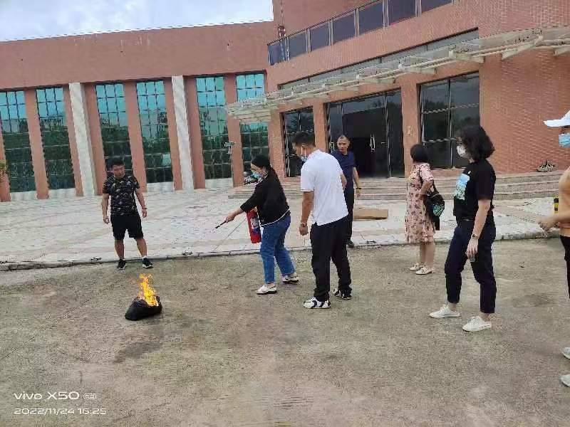 创文活动结束后,党员回到南校区体育馆开展消防演练。党员巡查了体育馆,排查安全隐患,接着观看消防视频,学习使用灭火器,然后轮流练习使用灭火器灭火。