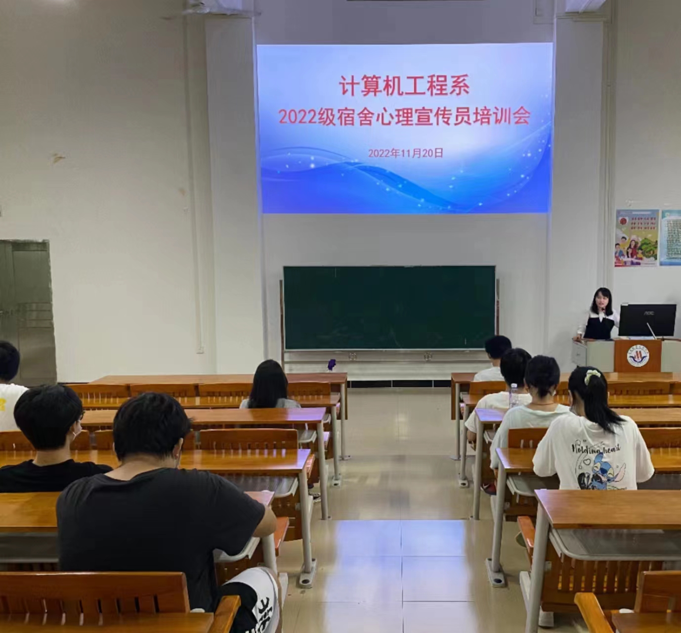 近日,计算机工程系在南校区1号教学楼201室召开宿舍心理宣传员培训会。计算机工程系大一辅导员麦敏君、崔森蕊和2022级宿舍心理宣传员参会,培训由麦敏君主讲。