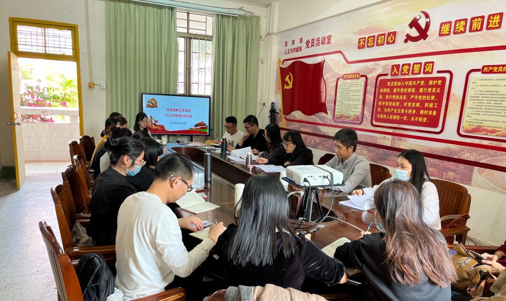 3月16日下午,思政部教工支部召开2022年度组织生活会,本次会议由思政部教工支部书记宋舒同志主持,全体党员教师参加。