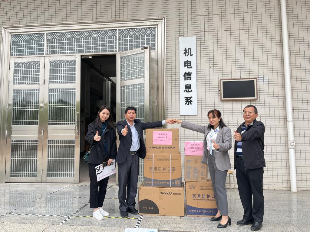 3月29日下午,上海三菱电梯有限公司粤西分公司人力资源部经理陈琼珍、人事专员陈梅到访机电信息系,探讨2021级订单班招聘和开设2024级现代学徒制班等事宜,并代表公司捐赠N95口罩及普通医用防护口罩6000个,衷心祝愿我校师生健康快乐、如意如愿。