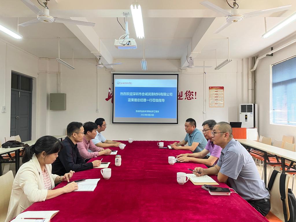 会议伊始,陈少峰对公司领导一行的到校访问交流表示了热烈的欢迎,就化学工程系人才培养、专业建设、科研与社会服务、岗位实习与就业等相关情况作了简要介绍;深圳市合诚润滑材料有限公司总经理蓝秉理就企业产品技术研发、科技成果转化、厂区规划建设等相关情况作了简要介绍并分享了企业岗位工作视频。