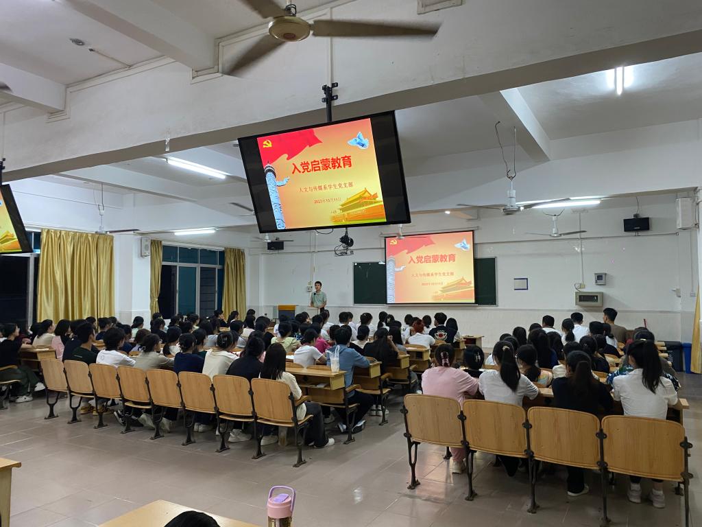 为增强2023级新生对中国共产党的了解和认识,激发同学们的入党热情,引导其积极向党组织靠拢,把握入党程序和要求,加强大学生的思想政治教育。10月11日晚上,人文与传媒系学生党支部在3栋301教室开展入党启蒙教育活动,2023级新生参加了本次入党启蒙教育活动。