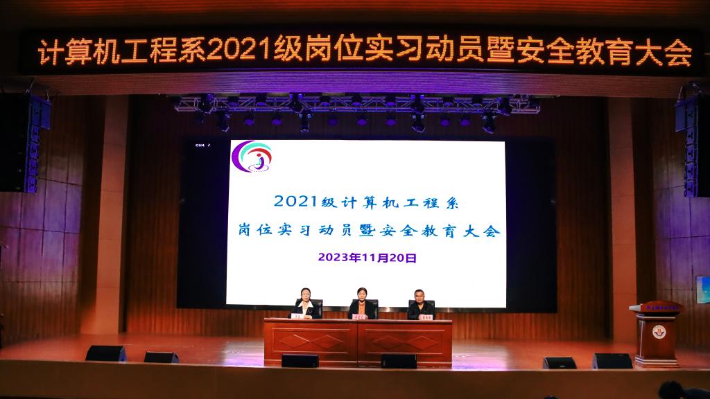 11月20日上午,计算机工程系在南校区学术报告厅召开了21级岗位实习动员暨安全教育大会。系主任周洁文、系副主任周春、系党总支副书记蒋南牧、实习指导老师及2021级学生参加大会,大会由辅导员程江玲主持。