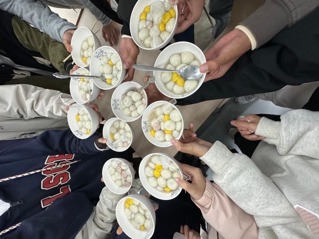 活动现场变成了一个大型的包饺子现场,不管会不会包饺子的同学都带上手套亲手包饺子,在一片欢声笑语中,一个个“个性化”的饺子出现在盘子上。同学们通过亲手包饺子,煮汤圆,体验到传统文化的乐趣,也加深了同学们的学习交流。忙碌过后,一盘又一盘热气腾腾的蒸饺和汤圆端上了桌,大家都迫不及待地想尝一尝自己包的饺子,满脸都是快乐,满心都是欢喜。整个冬至的下午,室外寒气逼人,室内大家被温暖包围,吃着可口的饺子,大家都沉浸在快乐的氛围中,大家的欢声笑语冲散了天气带来的寒冷。(文/图:人文系)
