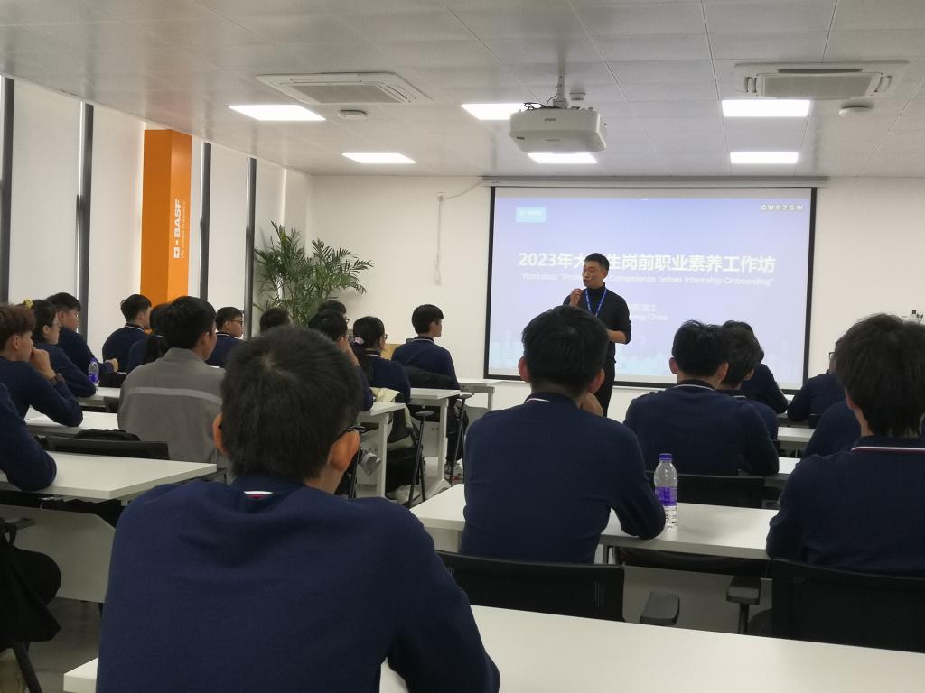 下午,同学们与部门同事及领导进行见面交流。交流会上,巴斯夫各部门的职员及领导从介绍自身的工作经历开始,向学生们介绍了巴斯夫在中国的发展、企业的文化、业务领域以及同学们将来到巴斯夫湛江一体化基地的发展规划,鼓励同学们勇于沟通、勇于交流,强调每个人的成长要努力去做,善于去学,及时反思自己的差距,将个人的职业发展与企业的发展紧密结合。