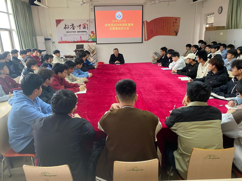 近日,机电信息系党总支在党员活动中心召开2024年招生宣传志愿者动员大会。2022级全体入党积极分子和2023级学生干部代表一致承诺:动起来、讲起来,树立机电新形象,我为茂职发展壮大添光彩!