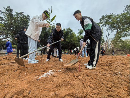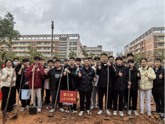 通过本次植树活动,提高了同学们的环保意识,使大家认识到保护环境绿化的重要性,增强了学生的团队协作精神,培养学生的社会责任感。下一步,人文与传媒系将牢固树立“绿水青山就是金山银山”的理念,促进校园育人环境进一步绿化、美化,持续推动学校高质量发展和为打造绿美茂名奉献自己的力量。(文/图:人文与传媒系)
