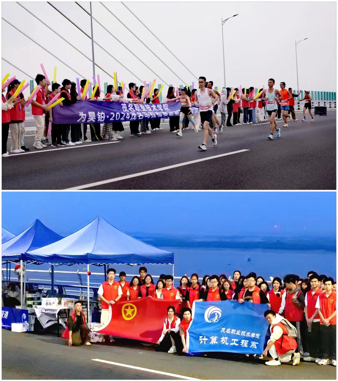 当天清晨,志愿者们按照我系“马拉松”赛志愿服务安排和活动安全提示,整装待发,分四组奔赴“茂马”服务站点,负责了茂名“水东湾大桥”上桥、下桥等赛事路段的氛围营造、补给站服务、赛道观察、呐喊加油等工作。