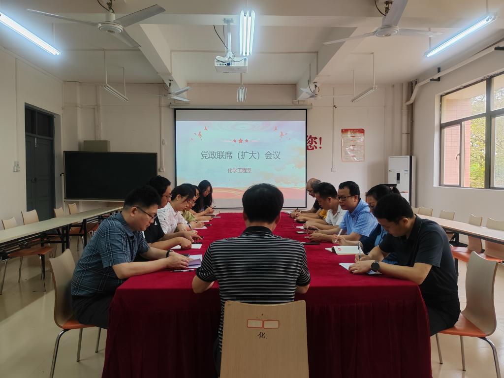 日前,化学工程系在党员活动中心9-205召开党政联席扩大会议,学校领导董利同志出席。会议由系党总支副书记黄小翰主持。